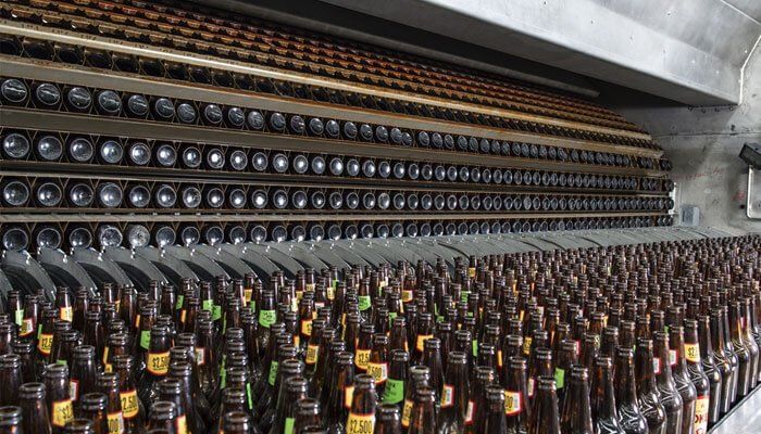 In the sector of bottling of beer and other types of drinks, ZMC is specialized above all in the construction of chains for bottle-washing systems. For this purpose chains with attachments, welded or bent, are used, exploiting the holes of the attachment or the screws welded inside them for fixing the crossbars on which the bottles are transported.