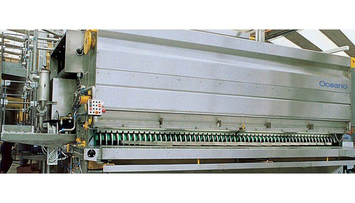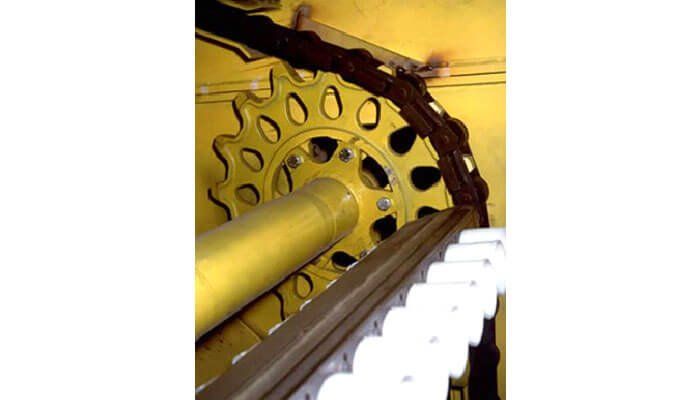 These chains require high strength and long wear life without lubrication. For part of the process the chain works immersed in water with diluted detergent and often polluted by abrasive elements (dust, paper residues, etc.) coming from the glass bottles. To obtain the expected results, as well as a correct sizing of the components, high performance materials are used, including stainless steels. Solutions with self-lubricating elements can be studied on request.